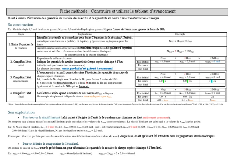 Pour identifier le réactif limitant et trouver l'avancement maximal il faut supposer a tour de rôle que chaque réactif puisse être le réactif limitant et calculer la valeur xmax correspondante. 6 533 просмотра 6,5 тыс. Méthode d'analyse et de synthèse de documents.