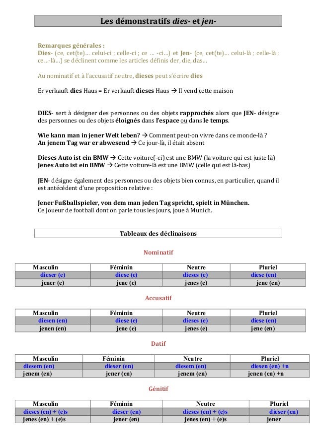 Il y a neuf prépositions qui peuvent être suivies du datif ou de l'accusatif : Mettez le pronom au cas nécessaire. Les autres cas de déclinaison sont le nominatif, le datif et le génitif. Il y a neuf prépositions qui peuvent être suivies du datif ou de l'accusatif :
