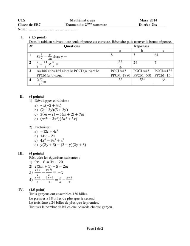 Le pgcd se calcule par divisions successives (méthode d'euclide) voir exemple plus bas. Pgcd prendre les exposants (puissances) les plus petits ( ici 2 puissance 1). Outil pour calculer le pgcd. Le pgcd de a et de b est alors le reste précédent (c'est à dire le dernier reste non nul).