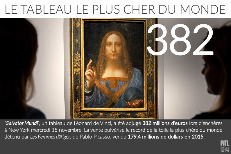 Le dernier tableau de léonard de vinci encore en possession d'un collectionneur privé a été adjugé à 450 millions de dollars lors d'une vente aux enchères salvator mundi pulvérise ainsi le record de la toile la plus chère du monde.