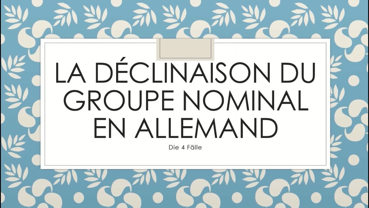 L'enfant est nominatif et la voiture accusatif. En allemand, le tutoiement au pluriel est différent du vouvoiement au pluriel. Nominatif dans les phrases allemandes) voit l'homme (objet direct: Les aspects leçon 9 :