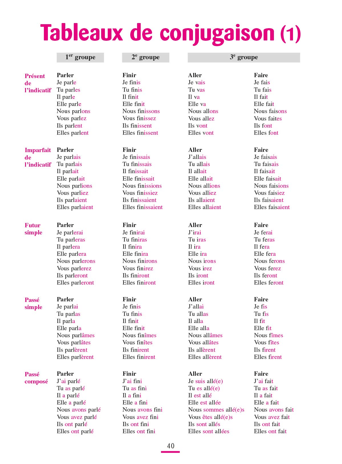 1/ distribuer le tableau de conjugaison vierge et laisser le temps aux élèves de le lire et se l'approprier.